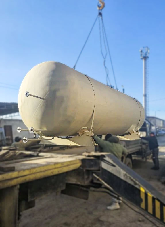 Емкость представляет собой герметичный сосуд цилиндрической формы, рассчитанный на работу под давлением. Исполнение может быть вертикальным или горизонтальным — выбор зависит от требуемого объема и условий размещения на площадке.